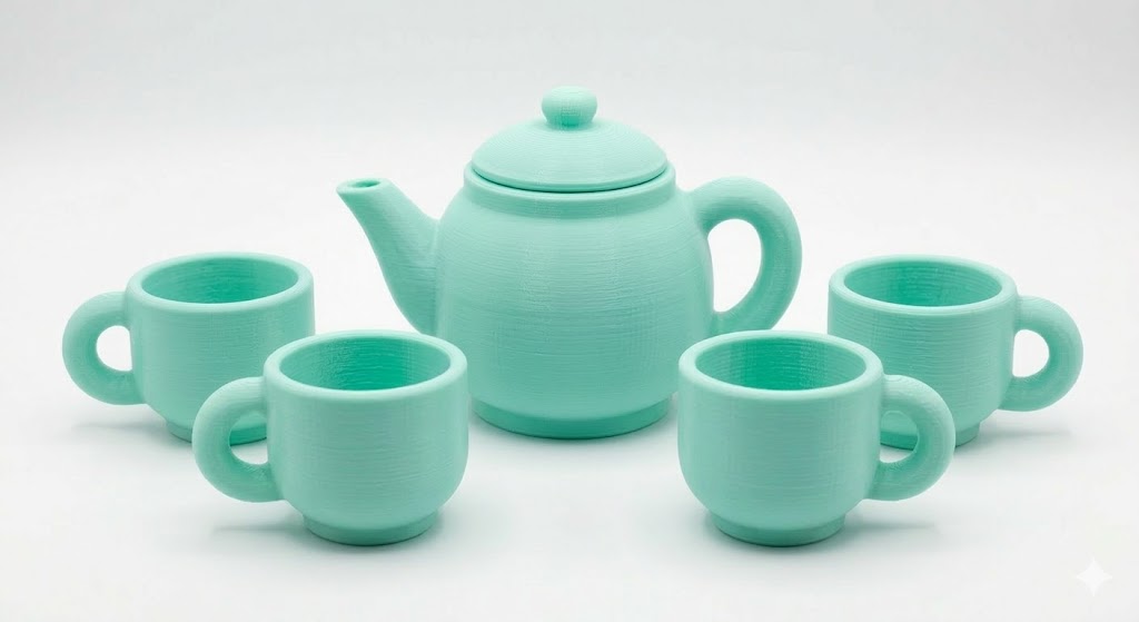 A miniature teapot with a removable lid and four matching cups, all sized perfectly for stuffed animal guests. The smooth rounded edges and solid construction mean this set will survive even the most enthusiastic tea parties.