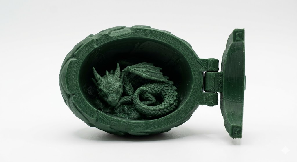 A hinged egg that clicks open to reveal a tiny curled-up dragon inside. The satisfying snap-shut mechanism means kids will open and close it dozens of times -- and the little dragon is just the right size for small hands.
